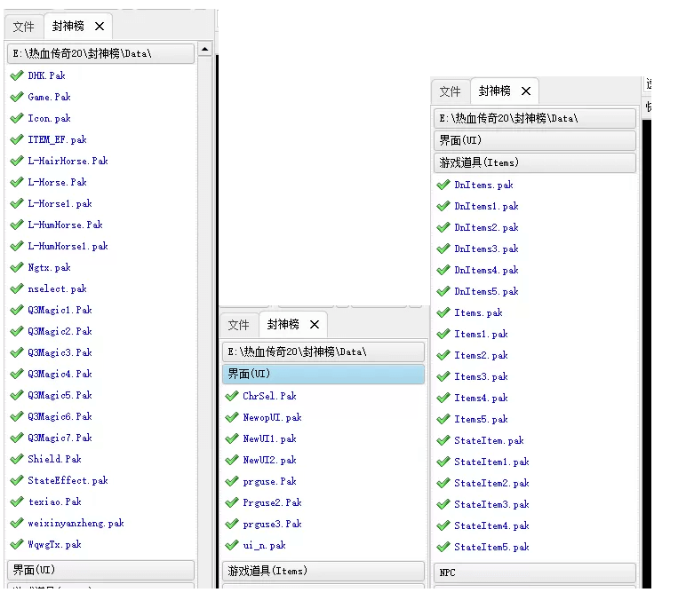 1、完整补丁中data目录下:NewUI1.pak,NewUI2.pak 密码为:GEEM2(去掉空格)
