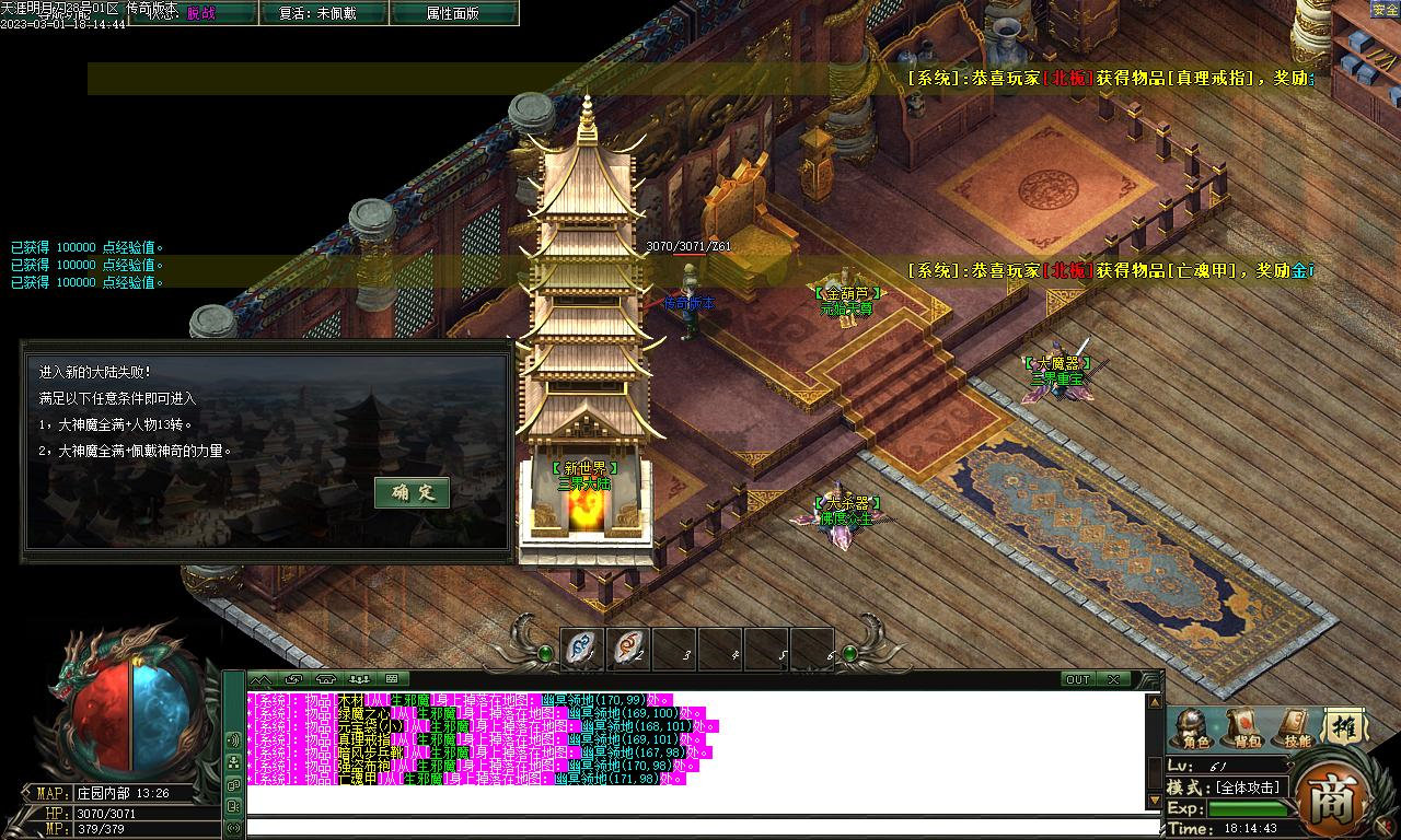 进入第五大区域书院排位赛地图总共九层 每层均有一个入口里面刷新各大BOSS需要消灭1-9层怪物